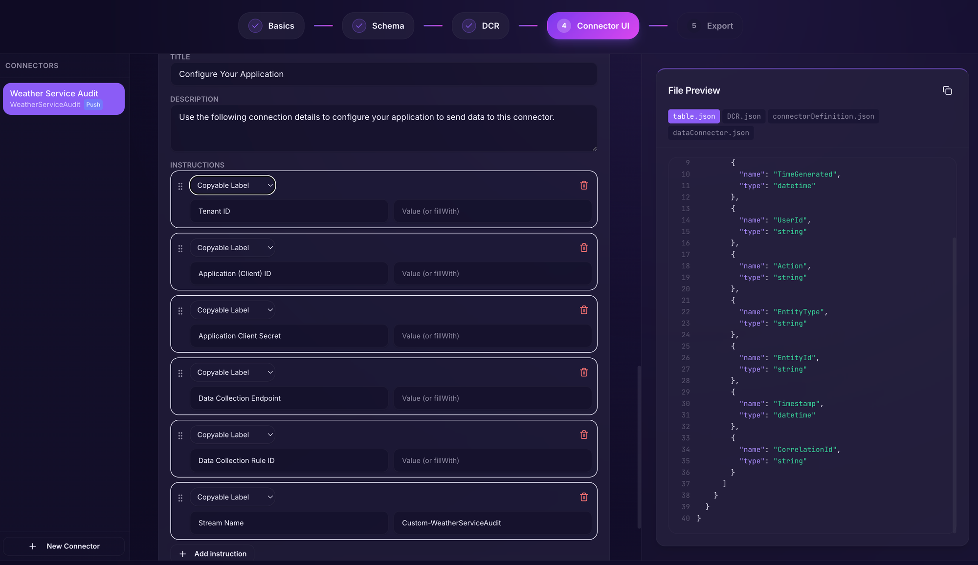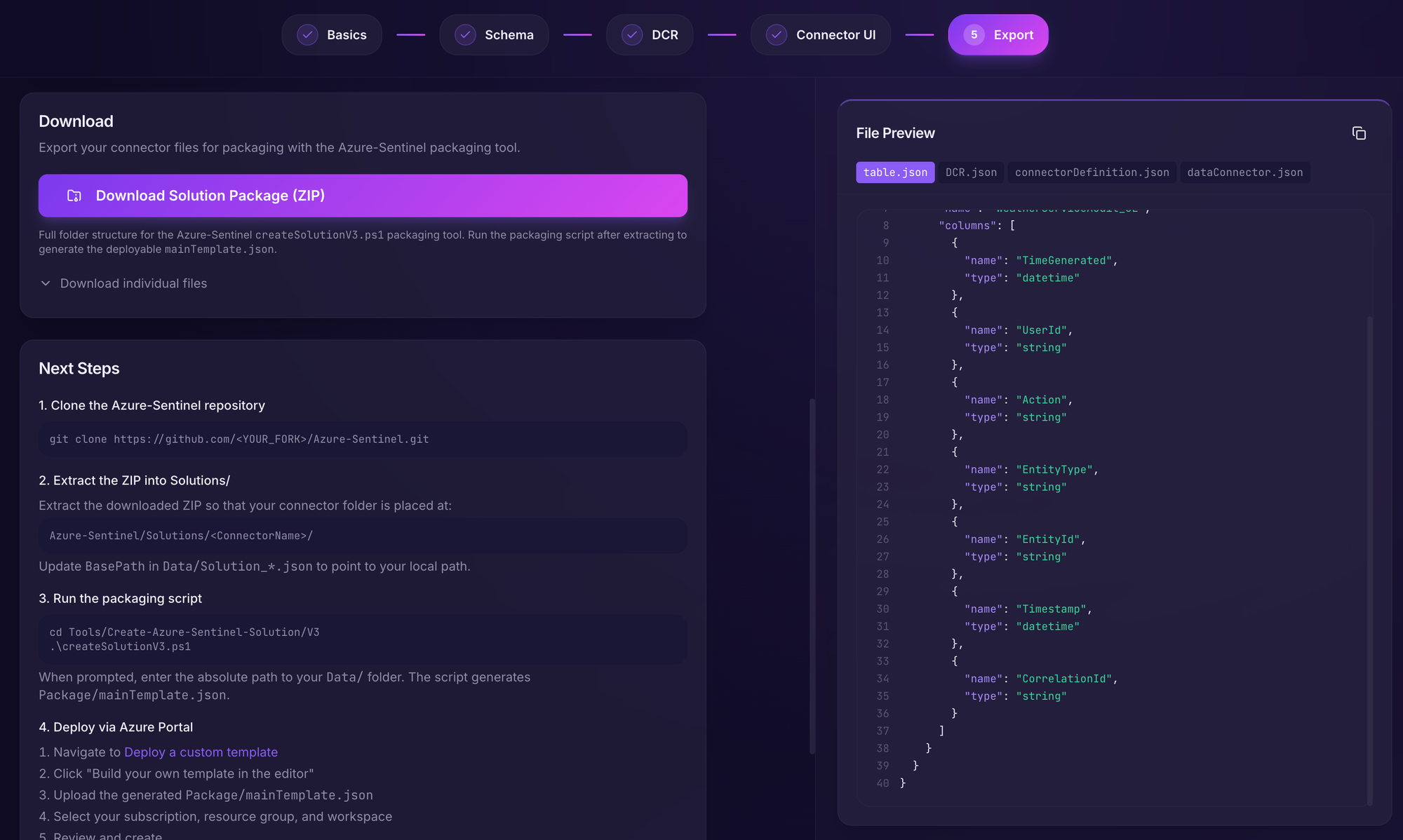 }Creating the data connector solution