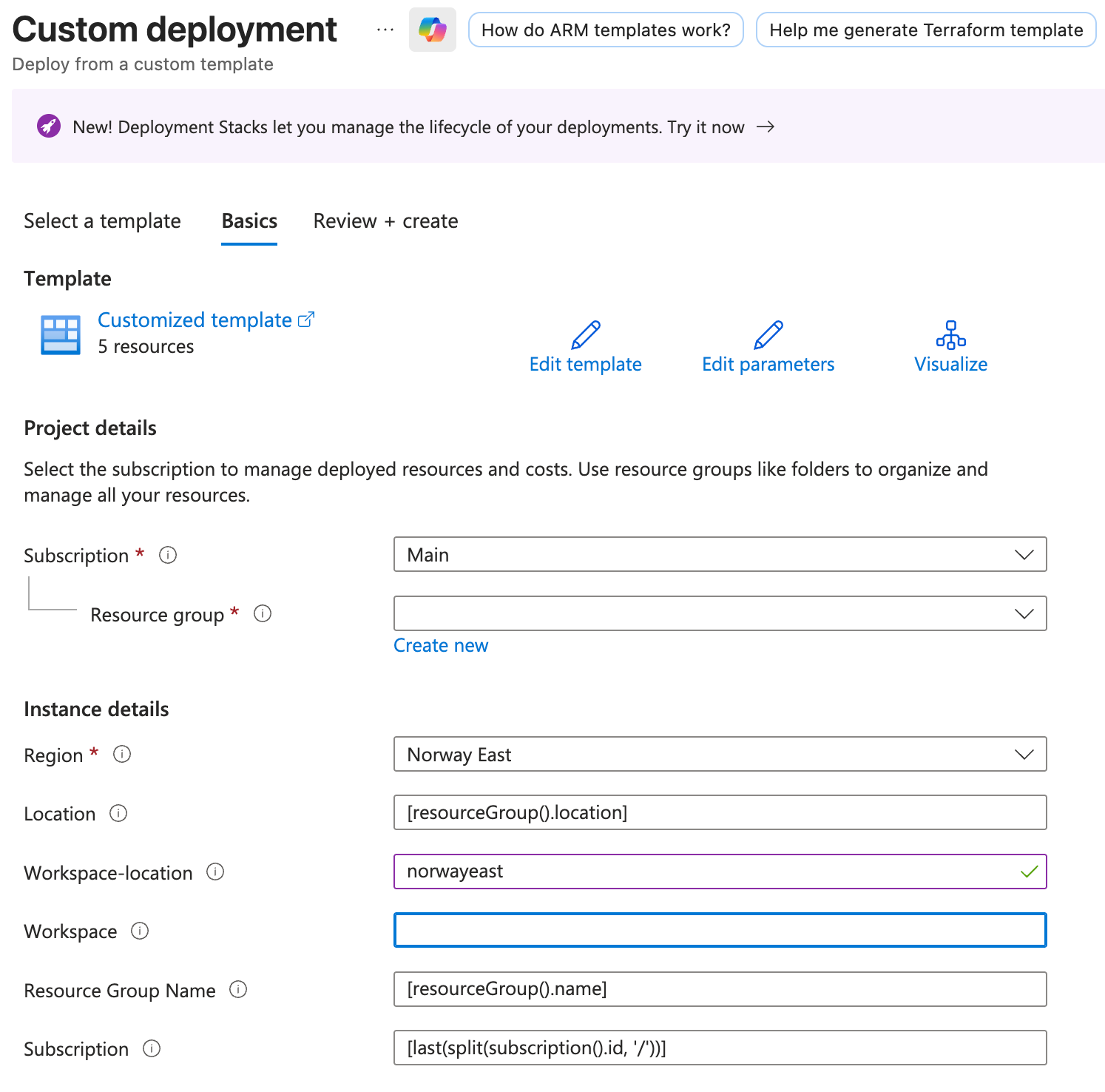 Once we invoke ./createSolutionV3.ps1 and give it the path to the Data folder, it will generate the ARM template for us.