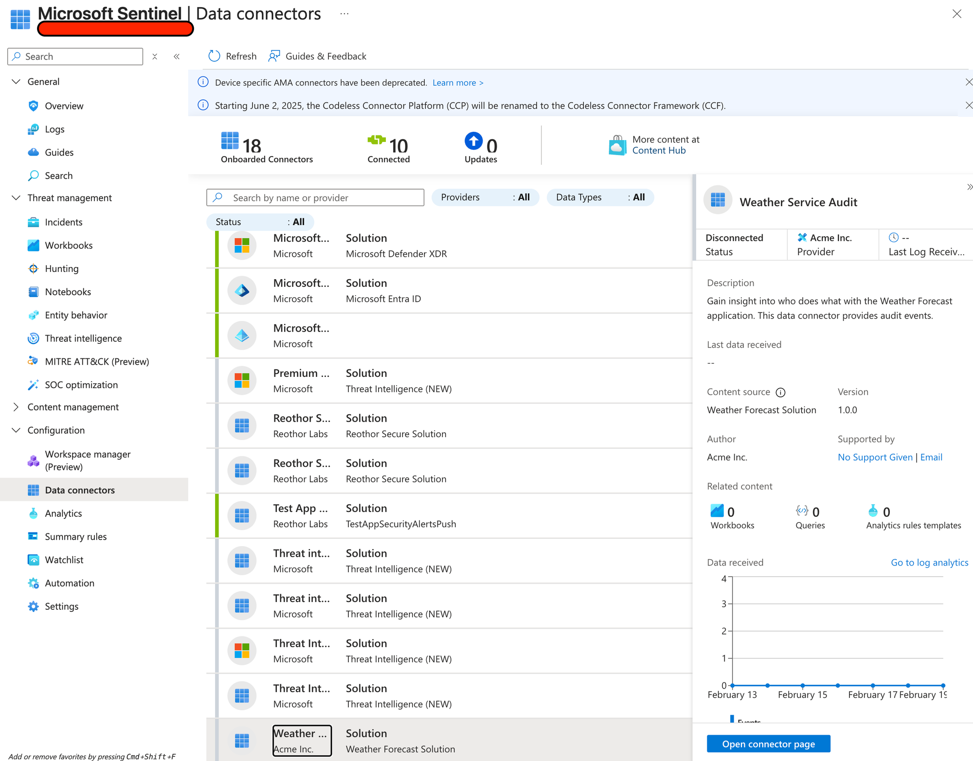 Once the deployment is successful, you can find it in the Data Connector section of Sentinel.