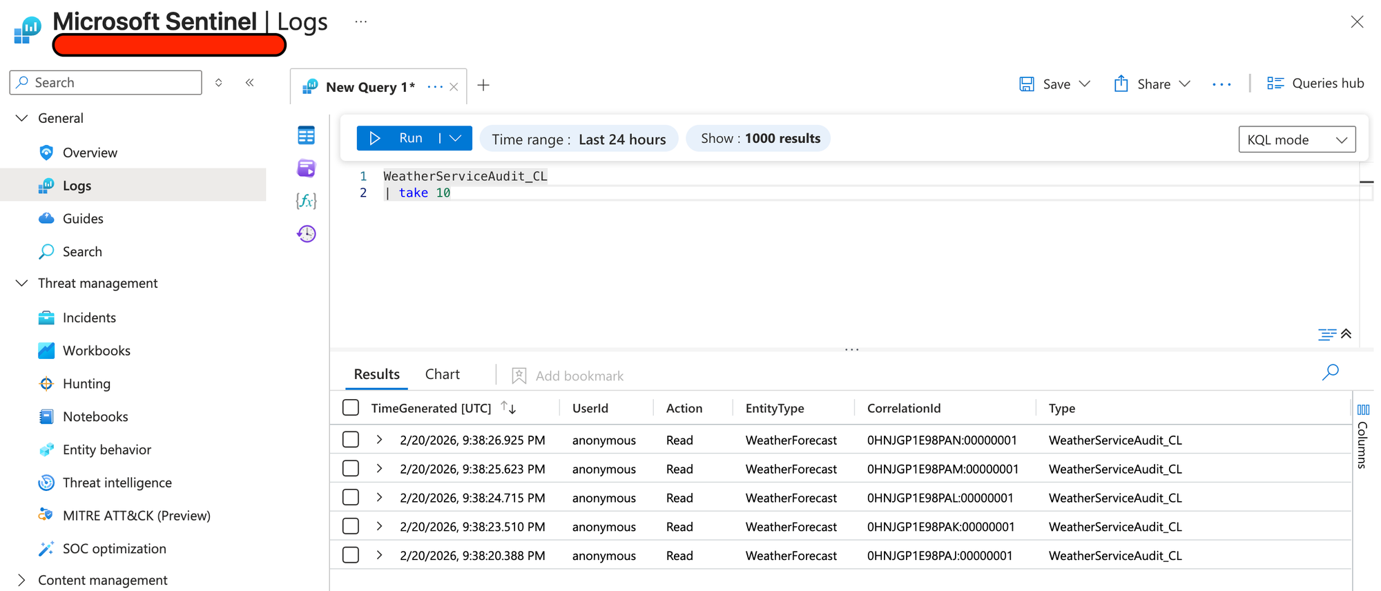 Now that we've added the necessary bits to our application, we can call it and see if audit entries arrive in Sentinel.