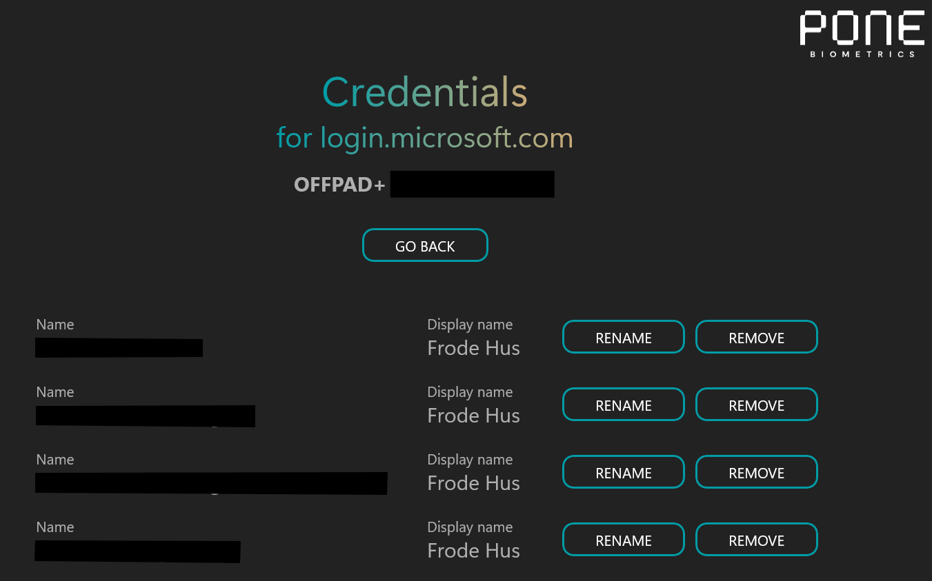As the image above shows, you can see exactly which credentials are stored on the OFFPAD for each domain and allow you to do basic management.