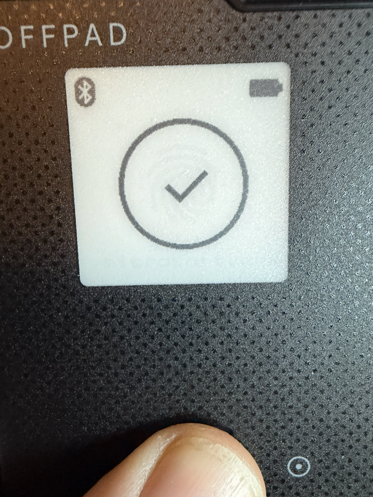 Once the OFFPAD+ is connected, you are guided through setting up your PIN code, your first fingerprint and how to onboard account credentials.